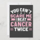 La audaz afirmación "No puedes asustarme, vengo con cáncer dos veces" sirve como un poderoso recordatorio de resiliencia y fortaleza. Usa orgullosamente para compartir tu viaje o apoyar a los seres queridos que enfrentan sus propias batallas, encendiendo conversaciones y difundiendo esperanza.