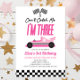 ¡Esta es una invitación a la fiesta de cumpleaños de tres coches de raza rosada!