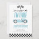 ¡Esta es una invitación a la fiesta de cumpleaños de tres autos de raza azul!