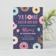 (H) Una hermosa y dulce invitación de cumpleaños para un chica (primer) cumpleaños. Los colores pastel rústicos se adaptan a cualquier estilo fiesta con donuts dulces y confeti de colores. Diseñado para coincidir con nuestra colección de temas Donut.