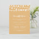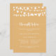 Esta noche amarilla antes del ensayo de la invitación a cenar es perfecta para un evento rústico. El diseño presenta bonitas luces de cuerda pintadas a mano en un fondo amarillo.