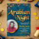 Entrar en un mundo de mística y ser encantado con esta invitación de la noche árabe. Esta invitación se hizo especial utilizando cautivadores colores de fondo con adornos de oro y diamantes complementarios para capturar la vitalidad y el encanto de un fiesta de temática árabe.