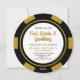 Invitación Noche de Casino Ficha de Poker Negra Blanca Dorada