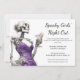 ¡Celebremos Halloween con estilo con nuestra invitación de "Chicas fantasmales de la noche de fin"! Un ilustracion de esqueleto femenino de moda con cóctel en la mano marca la tónica para una noche divertida y glamurosa con amigos. Perfecto para reuniones de chicas de Halloween, cócteles espeluznantes y elegantes sofás.