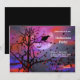 Una espeluznante y llamativa invitación a la fiesta de Halloween con una silueta de un cuervo sentado en un árbol en la noche de Halloween, con luna llena. Personalizar el texto de ejemplo a sus preferencias.
