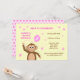 Esta encantadora invitación a la fiesta de cumpleaños número 2 tiene un mono sonriente con un globo rosa de cumpleaños número 2. "¡Ayúdanos a celebrar!" Todo el texto es editable, simplemente escriba los detalles de su fiesta en los cuadros de personalización. El fondo de la carta es crema y algunas estrellas blancas y rosas dispersas. En la parte posterior, un punto polka rosa sobre un fondo rosa claro y coordinado, con una estrella en el centro.