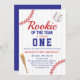 Invitación al primer cumpleaños del partido Rookie Of The Year. Celebra tu primer cumpleaños con nuestra adorable invitación de primer cumpleaños Rookie Of The Year al béisbol. ¡Esta es la manera perfecta de invitar a tus invitados a unirse a la diversión! Esta invitación está diseñada con una temática clásica del béisbol, con un esquema de colores rojo y azul que impresionará sin duda.