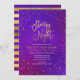 Invitación Noche estrellada Purp Acuarela Dorado Falso Baile