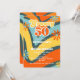 Invitación de cumpleaños Groovy 50 inspirada en el retro con un patrón de ondas retro, daisies y fuentes boho y colores.