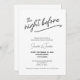 Este ensayo boda de invitación a la cena muestra texto negro sobre fondo blanco. El diseño ofrece acentos de un tipo de letra moderno de escritura a mano.