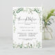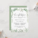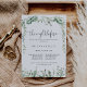 Esta noche verde de eucalipto antes de la cena, ideal para un evento moderno. El diseño se caracteriza por sus elegantes ramas y hojas de eucalipto botánico a mano de acuarela, adornando marcos geométricos.
