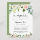 Esta sencilla y florida noche verde antes del ensayo de la invitación a cenar es perfecta para una noche moderna antes de que la familia boda y los amigos se reúnan. El diseño presenta rosas pintados a mano, blancos, rosados y ondulados, incrustados en un follaje verde, que inspiran la belleza artística.