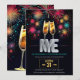 Invitación Nochevieja colorida fuegos artificiales Champagne