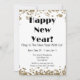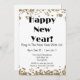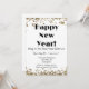 Una invitación blanca para la fiesta de Nochevieja con un diseño impreso de purpurina de oro y los detalles de tu familia que puedes hacer tu propio personalizar. Edite usando el editor de texto para añadir sus propios detalles. Esta es una elegante invitación para un fiesta de Año Nuevo o celebración para reunirse con sus amigos. Disponible en copias impresas o como descarga digital después de personalizarla.