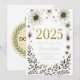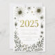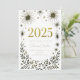 Glamurosa invitación de Nochevieja con fuegos artificiales metálicos dorados y plateados, '2025' en negrita y tipografía elegante. Una estética moderna de lujo en negro y dorado.