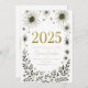 Glamurosa invitación de Nochevieja con fuegos artificiales metálicos dorados y plateados, ‘2025’ en negrita y tipografía elegante. Una estética moderna de lujo en negro y dorado.