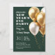 Invitación Nochevieja MODERNA Fiesta Globos de Oro Esmeralda