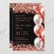 Invitación Nochevieja Rosa Oro Shimmering Luces Globos