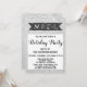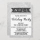 Celebra la temporada de fiestas con esta invitación festiva de los Navidades Noel. Los detalles del fiesta están escritos en una tipografía de escritura negra caprichosa y audaz con un fondo brillante de purpurina plateado. ¡Esta invitación es perfecta para unas vacaciones / Navidades / fiestas de invierno!