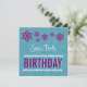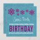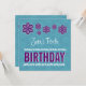 Este diseño contemporáneo con flores de encaje morado y fondo acuático es una manera divertida de invitar a la gente a la celebración de cumpleaños de un niño de nueve años. Todo el texto es personalizable. Puede experimentar con diferentes tipos de papel haciendo clic en la pestaña "Opciones de invitación" en la esquina superior derecha. Recomiendo este diseño en un papel metálico con caseta de hielo que le da a su invitación un brillo festivo.