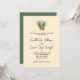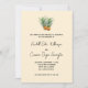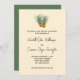 Invitación minimalista a la boda de las piñas. Color amarillo-naranja pálido con escritura moderna y fuentes impresas, esta invitación ofrece actualizaciones en papel y también una opción de descarga. Dos pequeñas piñas son el diseño en la parte superior, con plantillas escritas a mano para los nombres de la pareja. Revertir es verde oscuro sólido.