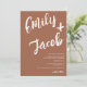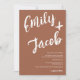 Una invitación de boda moderna, audaz y elegante con nombres personalizados con una caligrafía a mano con marcador cepillado en boho terracota y blanco. Todo el texto, nombres y colores de fondo son personalizables. Una invitación simple y minimalista. Agrega tu código qr para una invitación de boda todo en uno con rsvp, detalles y más información.