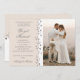 La Invitación de Bodas blancos de vainilla presenta su foto personalizada y los corazones amorosos románticos purpurinas de plata en un fondo blanco y vainilla con la información de su invitación boda a la izquierda. Personalice editando el texto en el cuadro de texto proporcionado.