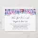 Elegante invitación de recepción post-boda floral rosa y azul polvoriento para celebrar su unión reciente.