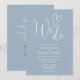 Esta invitación de boda de elegante letra minúscula azul polvorienta se puede personalizar con su información en tipografía chic con los detalles de su sitio web de boda y su código QR en el reverso. Diseñado por Thisisnotme