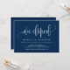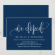 Esta tarjeta de invitación de diseño de caligrafía moderna (nos escapamos) es perfecta para la celebración / anuncio de su boda de escapada. Agregue sus datos en letra / letra de fuente azul marino a juego.