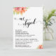 Aquí tienes una divertida y sencilla opción para las necesidades de tu celebración post-boda. Sobre un fondo blanco editable, he colocado pequeños rociadores pintados de flores de acuarela y un gráfico de tipografía que dice "nos escapamos" con una fuente de escritura elaborada y adornada con corazones. Debajo, tus detalles aparecen en una fuente simple en mayúsculas. Más flores y la palabra "amor" en escritura aparecen en la parte trasera. Utiliza los campos del modelo para agregar tu propia información y haz clic para personalizar aún más si deseas hacer alguna modificación adicional. Todas las capas están desbloqueadas para permitir todo el control de posicionamiento y tamaño que desees.