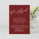 Ya te has casado y ahora es hora de tu gran celebración. Esta tarjeta elegante y versátil podría ser la solución ideal para ti. Con una fuente de caligrafía moderna y lujosa, el encabezado dice "Nos escapamos". Utiliza los campos del template para agregar tus datos personales. ¡Y cambia el fondo a cualquier color que prefieras! // 137 //