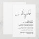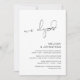 Esta es la tarjeta de invitación para la fiesta de bodas clandestinas, con diseño de letra minimalista / minimalismo (nos escapamos)
