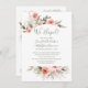 Invitaciones solo para recepción después de la boda con foto opcional en la parte trasera - Corona floral elegante pintada a mano con acuarela con rosas corales rosadas y vegetación botánica de jardín. Acentuados con caligrafía manuscrita de moda con campos de plantilla fáciles de editar. La elección de la tipografía, el diseño y los colores se pueden modificar según el estilo y el gusto.