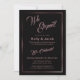 Anuncia tu reciente matrimonio e invita a tu tribu a celebrarlo contigo con esta tarjeta de invitación audaz y festiva. Utilizando dos fuentes complementarias, tus datos se pueden agregar fácilmente a los campos de plantilla proporcionados. Haz clic para personalizar aún más según sea necesario; todas las capas se agregaron por separado para ofrecerte un control máximo de diseño. Sobre el fondo negro he colocado una insignia rectangular en negro que está delineada en dos bordes metálicos falsos de color rosa dorado y elegantes. El fondo negro y el rectángulo se pueden cambiar a cualquier color que prefieras. La parte posterior se cubrió con un gráfico de rosa dorado falso metálico que se coordina perfectamente con el doble contorno del marco de la parte frontal de la tarjeta. Por favor, no dudes en contactarme para solicitudes especiales o asistencia de personalización.