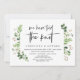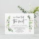 Tarjeta de invitación de boda con tema de jardín de verano con hojas verdes, guión negro moderno (Nos hemos casado). Es perfecta para su recepción de boda íntima / fiesta de celebración post boda. Agregue sus detalles en fuente / letra negra coincidente.