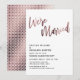 Para el encabezado de estas tarjetas en negrita, he utilizado una fuente manuscrita casual y moderna para crear una superposición de tipografía gráfica que dice "Estamos Casados". Esta imagen fue embellecida con un efecto de lámina de oro rosa metálico suave para un ambiente festivo. Rellene los espacios en blanco del template con sus detalles para personalizar el diseño. Todas las capas se dejaron sin bloquear para que pueda hacer clic para personalizar aún más y reposicionar el texto o incluso cambiar tamaños o fuentes. El fondo fue cubierto con un patrón retro repetitivo inspirado en Marruecos que ha sido embellecido con el mismo efecto de oro rosa. Por favor, no dude en hacernos saber si necesita ayuda con la personalización.