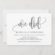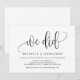 Esta tarjeta de invitación con diseño de caligrafía moderna (lo hicimos) es perfecta para la celebración de su boda y anuncio de huida. Agregue sus detalles en fuente / letra coincidente.