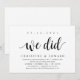 Moderno rústico, tarjeta de invitación con tema de escritura negra (con título de la tarjeta: lo hicimos). Es perfecto para su recepción de elopamiento después de la boda / fiesta de celebración después de la boda. Agregue sus detalles en fuente / letra negra a juego.