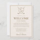 Nota de bienvenida de boda de golf con monograma de cresta clásica elegante.