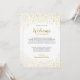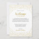 Nota de bienvenida moderna y elegante para boda con confeti dorado.