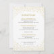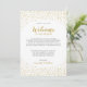 Nota de bienvenida moderna y elegante para boda con confeti dorado.