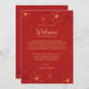 Nota de bienvenida para boda con diseño de flores de cerezo en rojo y dorado.