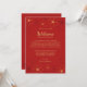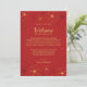 Nota de bienvenida para boda con diseño de flores de cerezo en rojo y dorado.