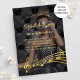 Personaliza y agrega tu foto. Decorado con notas de oro falsas. Plantillas para la información de su fiesta. Atrás: patrón follaje negro como fondo. He usado un overlay oscuro sobre la foto para que sea más fácil leer el texto. He agregado 2 capas, pero sólo una está activa. Hay un pequeño símbolo al final de la capa/línea superpuesta en la que puede hacer clic para ocultar o mostrar