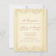 Estas tarjetas de recepción de boda, en tonos deslumbrantes de dorado pálido resplandeciente, crema suave y bronceado, son una elegante mezcla de sensibilidades Art Nouveau y Victorianas, con un marco sofisticado de hermosos giros y delicado trabajo de volutas, y texto en elegante letra cursiva y fuentes clásicas serif y bloque. El texto de la recepción es completamente personalizable: ¡personalízalo con tu propia información! Estas son perfectas para usar como tarjetas de recepción incluidas o como invitaciones solo para la recepción.