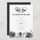 Esta invitación a la boda incluye flores negras de grafito dibujadas a mano y un skeleton gótico. Edite fácilmente la MAYORÍA de las palabras para satisfacer sus necesidades. Esta invitación a la boda es perfecta para tu caída de Halloween o boda de inspiración floral negra.