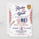 ¡esta invitación al primer cumpleaños de Rookie de Béisbol! Diseñado con el encanto vintage del béisbol y el estilo deportivo, con tonos clásicos rojos, blancos y marinos, tipografía audaz y elementos juguetones de béisbol, es una forma grandiosa de invitar a amigos y familiares a unirse a la diversión.