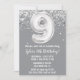 Invitación de 9 años a la fiesta de cumpleaños gris y plata, invitación de 9 años con plata blanca negra con escritura moderna y globos de Relieve metalizado divertidos.