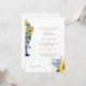 Hermosa Invitación a la boda floral toscana con girasol. La parte de atrás del Mediterráneo. Padres de la novia, texto de oro.